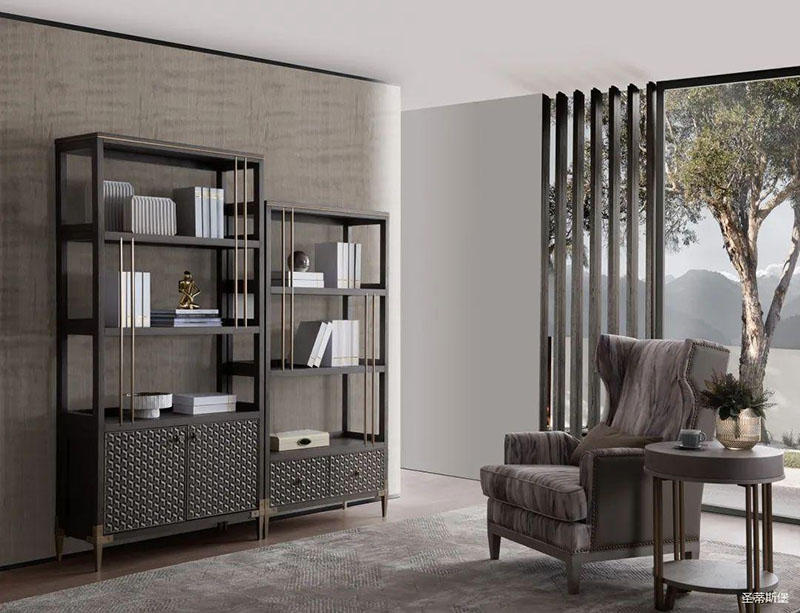 沉静雅致的书房空间,温润实木与硬朗金属线条相互配合,运用基础几何,打造空间的高级感。轻奢质感缓缓流淌,书籍整齐,摆件精致,无一不追求着精致细节与极致的品味,营造出时尚与沉稳并列的氛围,诠释着居者对是生活环境的内在追求。